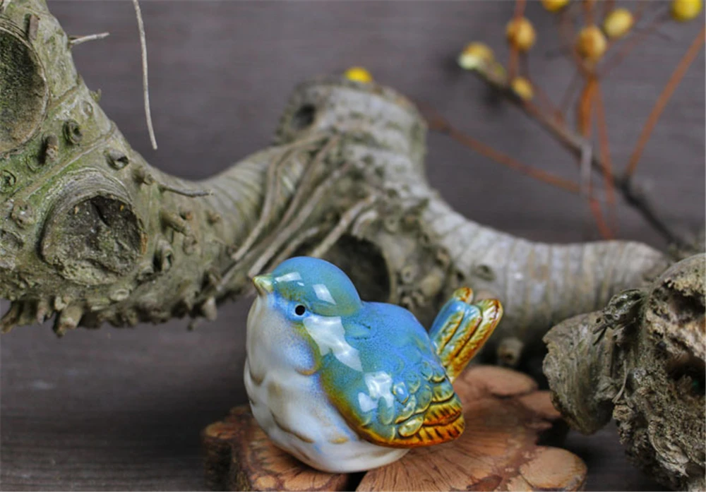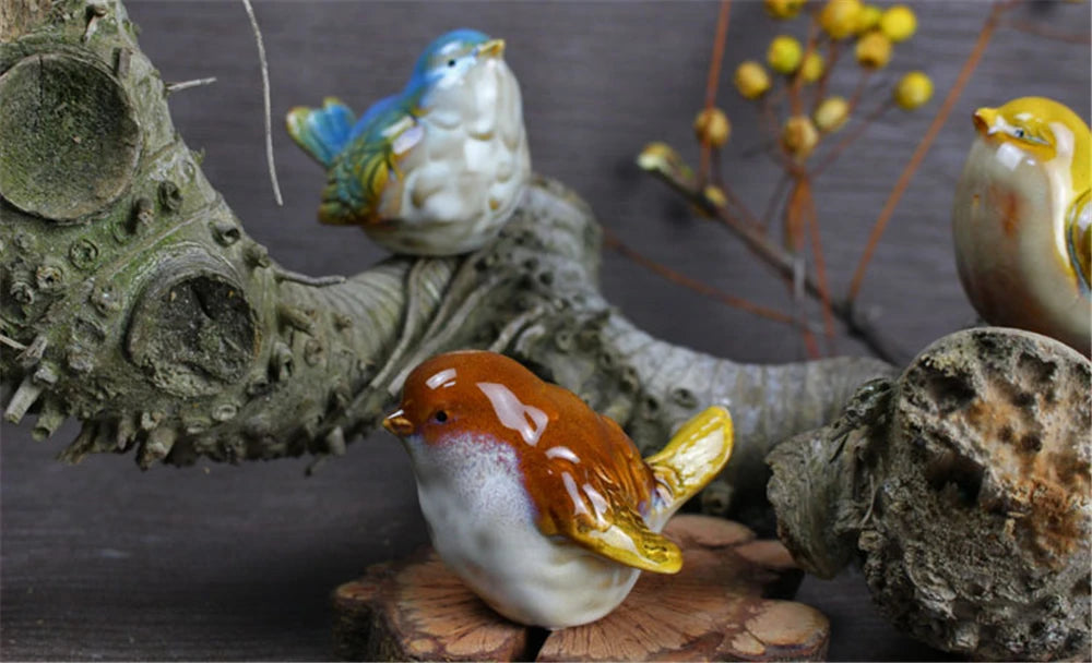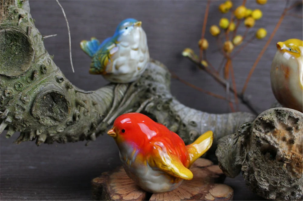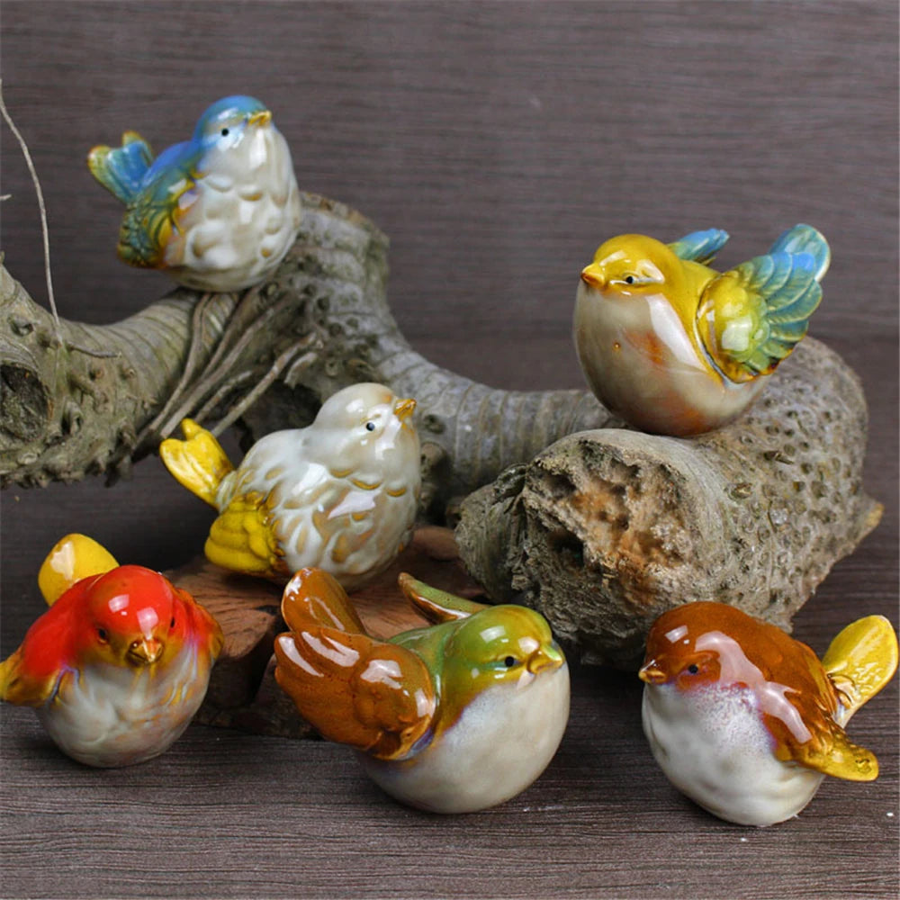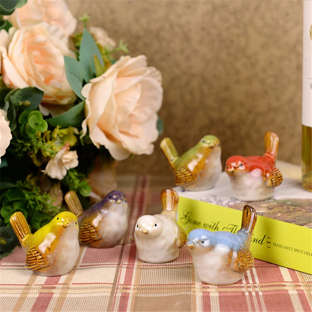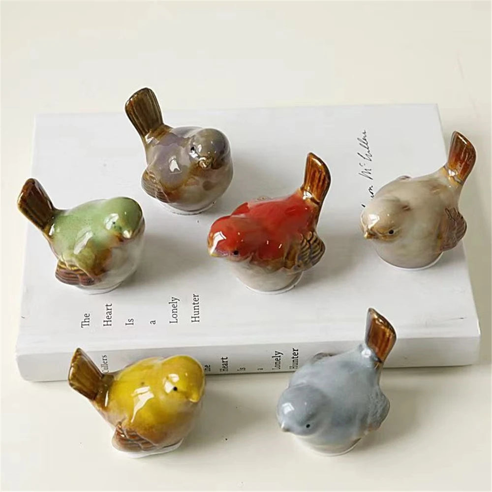 6pcs/Set Ceramic Objects Birds Statue Home Decor Porcelain Magpie Ornament Decorate Study Decoration Sparrow Tits Figurine Model