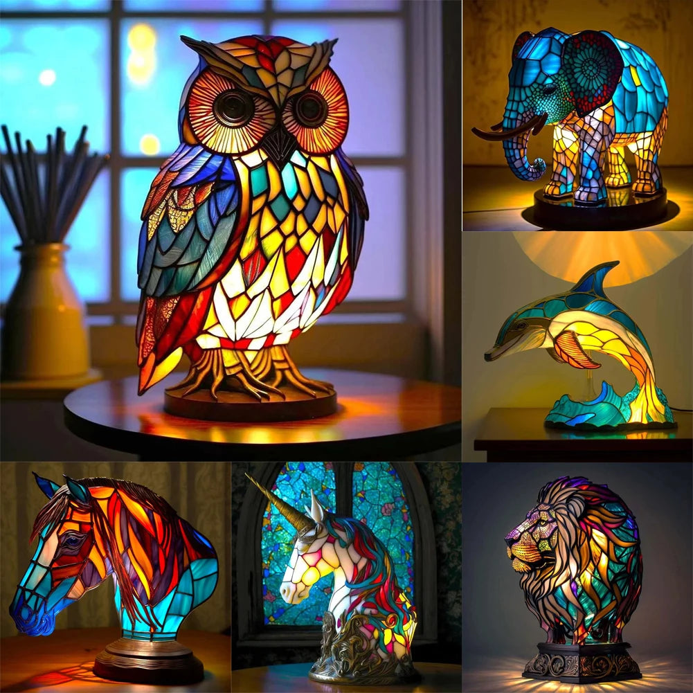 2. Vintage Decorative Lamp: With a variety of colors, shapes, and patterns available, our colored glass animal series table night lights offer unique decorations for sale. Matching them with your existing decor and injecting life into your display is effortless. Choose from a wide range of animal-themed stained glass lamps, including wolves, horses, lions, elephants, dragons, dolphins, cats, owls, and turtles, making it a versatile and practical decorative item.