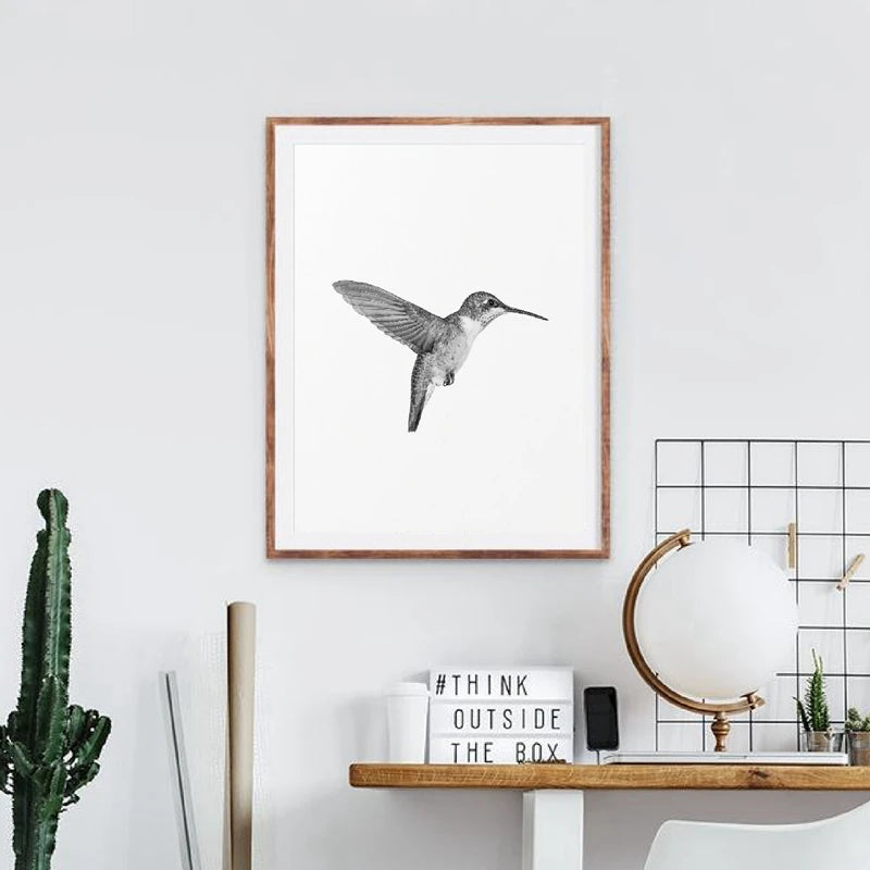 Bird Poster Print Minimalist Wall Art Picture Canvas Painting Black and White Hummingbird Photography Scandinavian Home Decor