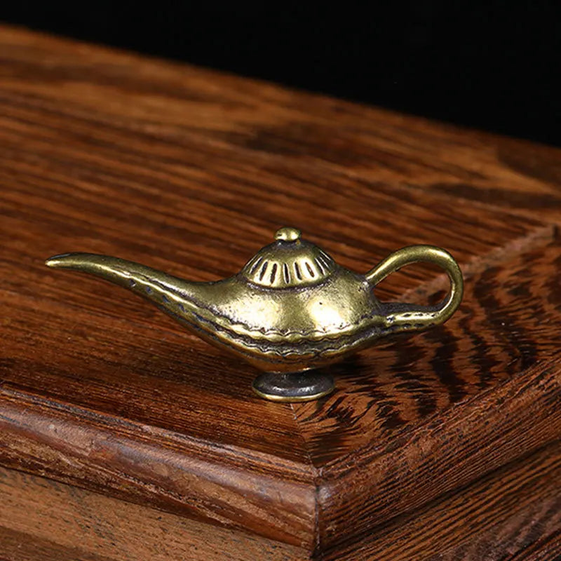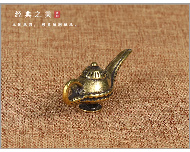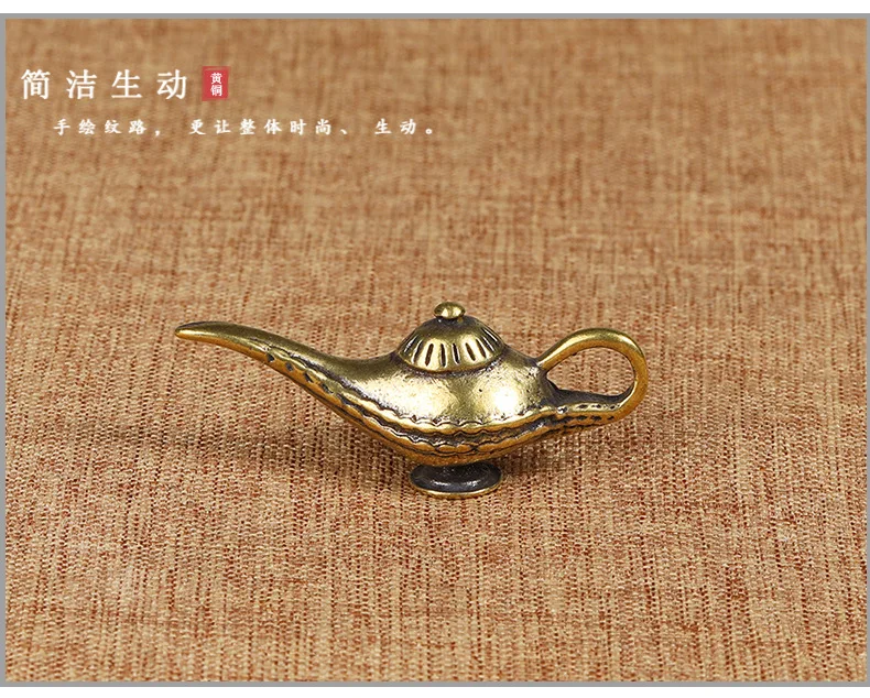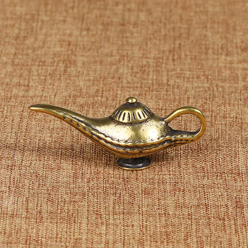 Brass Aladdin Magic Lamp Figurines Miniatures Creative Keychain Pendant Decoration Trinket Metal Copper Oil Lamp Keyring Hanging