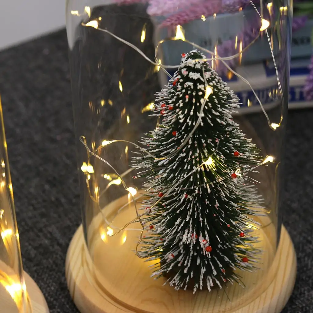 Brinkle Battery Operated LED Lights Wooden Base Clear Glass Cloche Dome Tabletop Decor for Home Decoration Gifts Party Decor