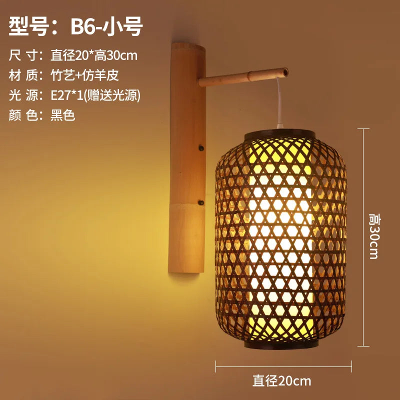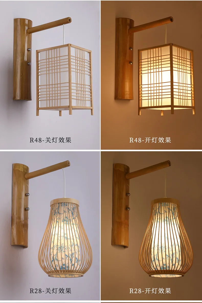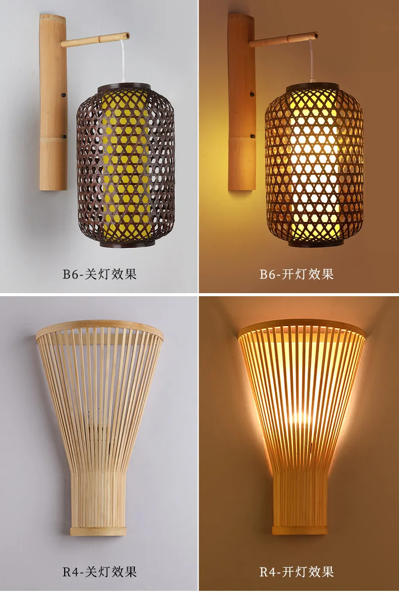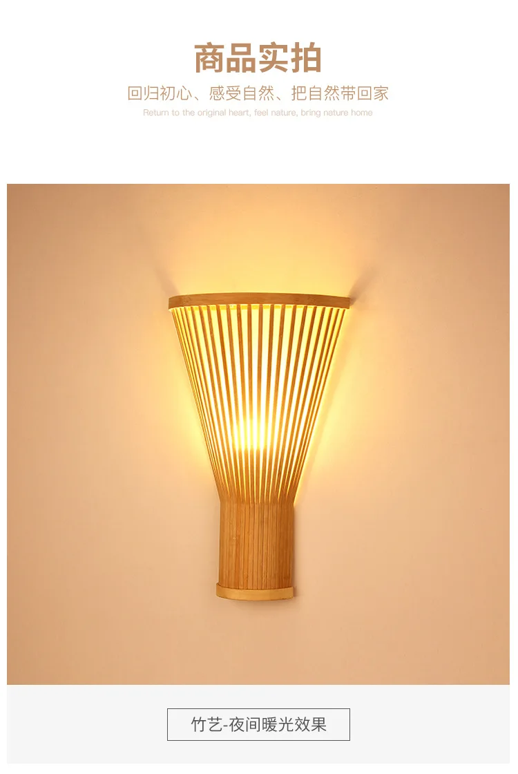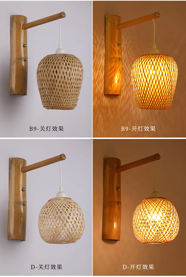 Classic Bamboo Wood Lustre Wall Sconce Lamp Rustic Ceiling Rattan Wicker Light Handmade Art Craft for Home Living Bed Room Decor