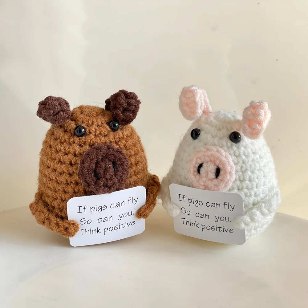 Crochet Positive Energy Bee Hand-woven Dolls Hug Pocket Handmade Knitting Doll With Card Desktop Ornament Gift Home Room Decor