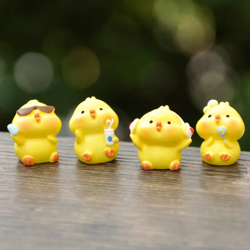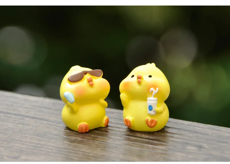 Figurines Miniatures Cute Yellow Chicken Animal Micro Landscape Ornaments For Home Decorations Room Decor Desk Accessories