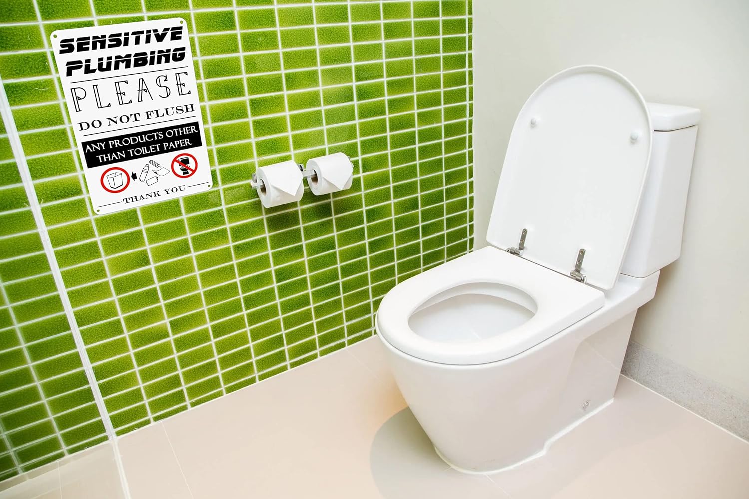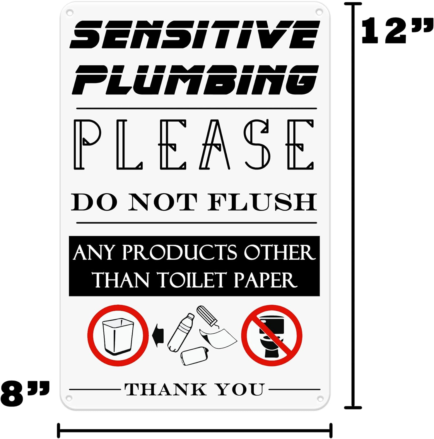 funny Bathroom metal Tin Sign - sensitive plumbing piease do not flush any products other than toilet paper 8X12 Inch,