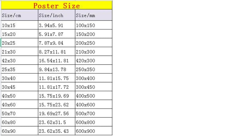 Size 1:10cmx15cm/15cmx20cm/20cmx25cm/21cmx30cm