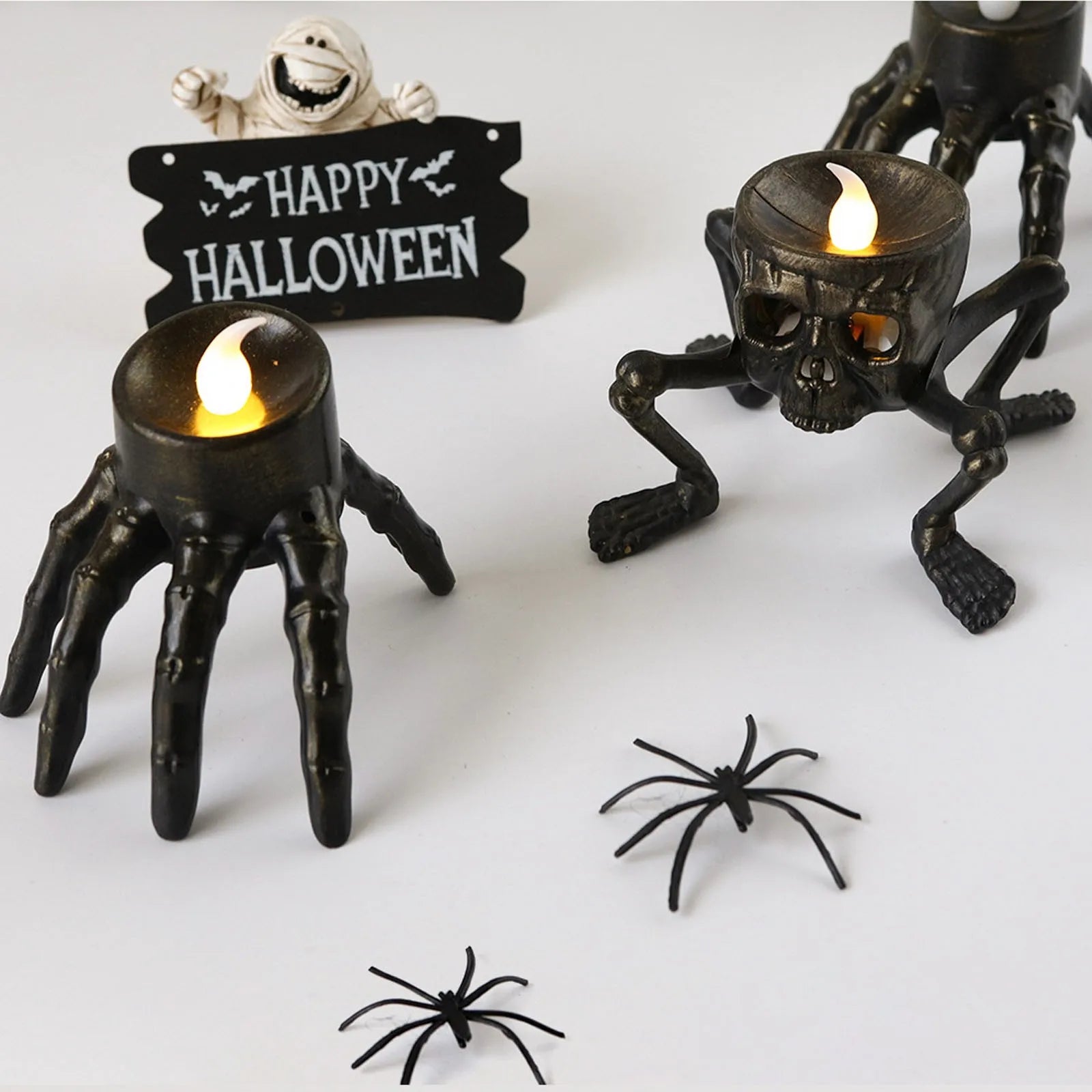 Halloween Skeleton Hand Lamp, LED Electronic Light Candle, Battery Powered Flameless Candle, Horror Halloween Indoor Decorative Light