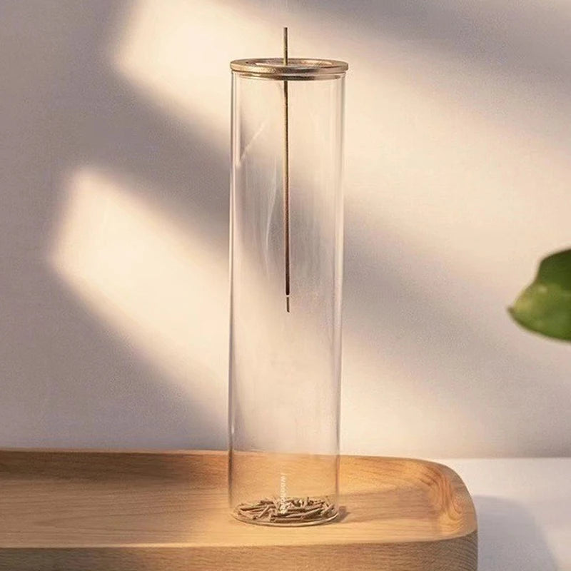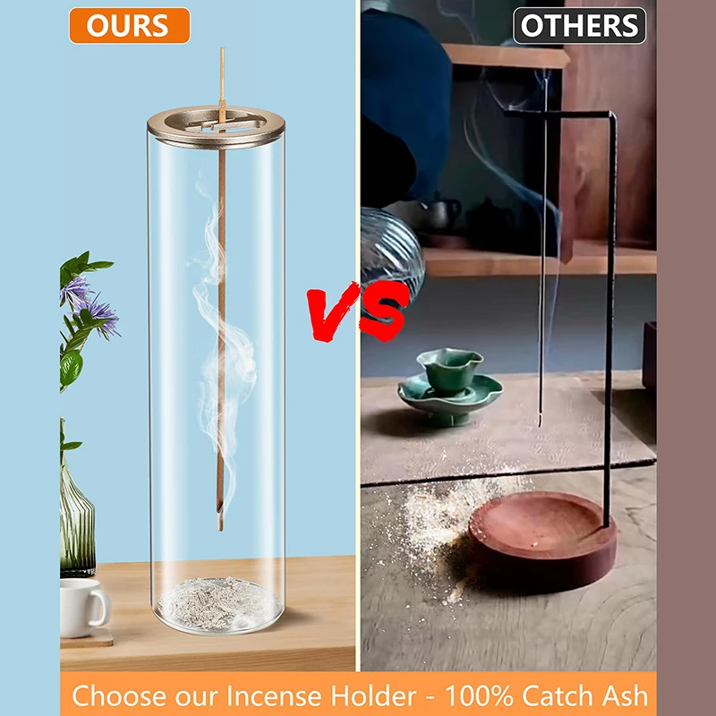 1,Function:Holds incense upside down for a more intense and long-lasting fragrance * Unique screw mechanism securely holds incense in place, accommodating stick scents from various countries including Korea, China, and India * Featuring a glass ash catcher at the base, preventing ash from flying and ensuring a clean and safe experience.