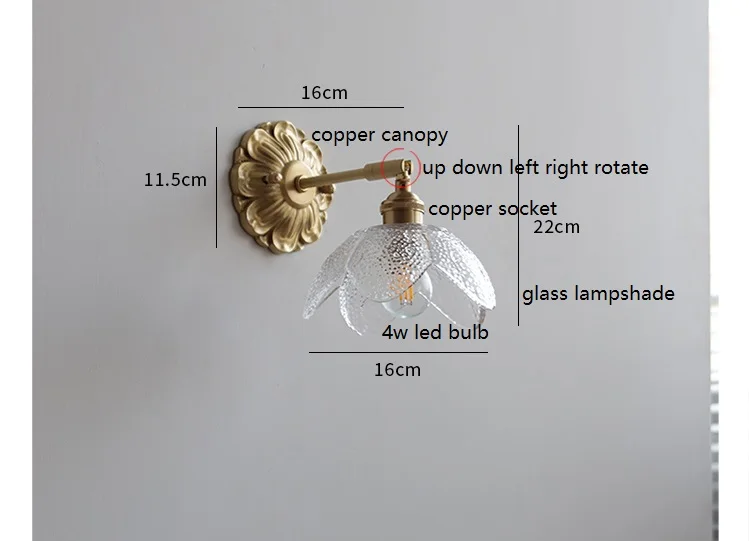 IWHD Smoke Gray Glass LED Wall Light Sconce Copper Arm Adjustable Bedroom Living Room Stair Beside Lamp Applique Murale Wandlamp