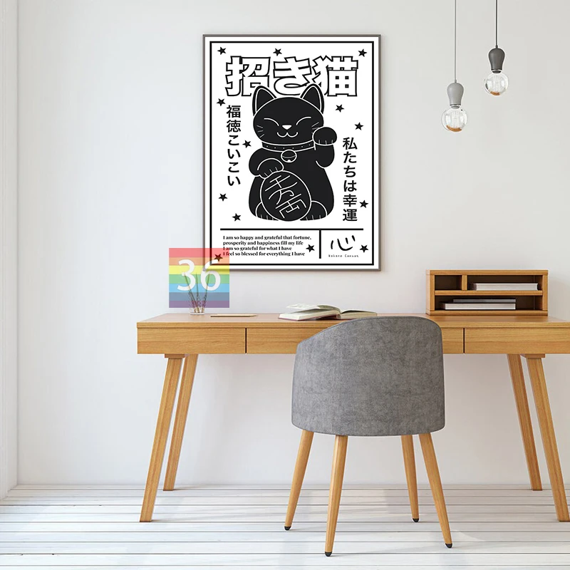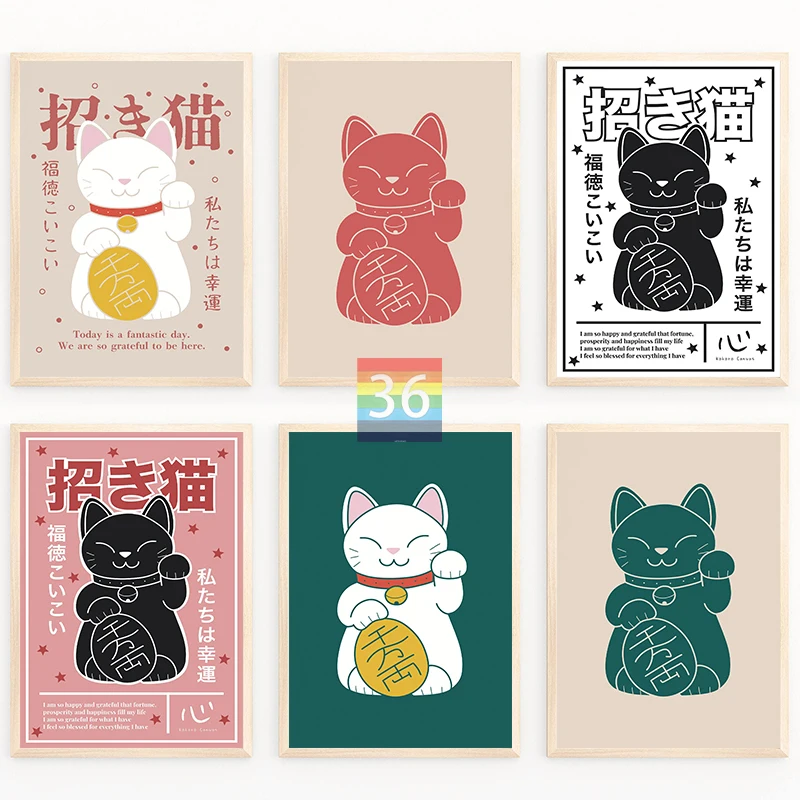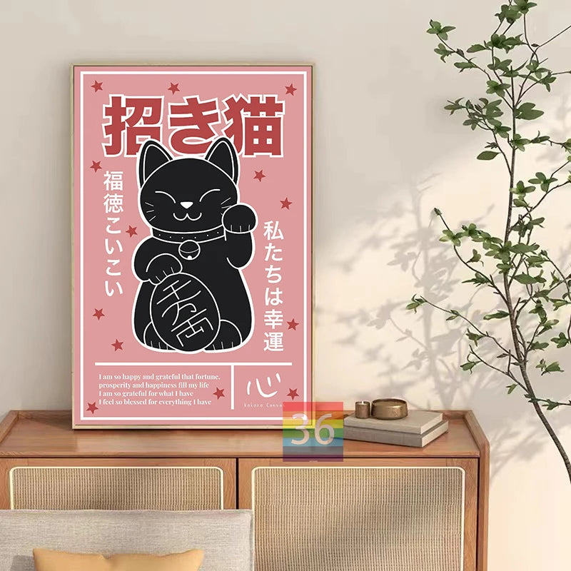 Japanese Retro Poster Lucky Cat Poster Canvas Prints Cat Lovers Gift Japanese Aesthetic Modern Japanese Wall Art Green Cat Art