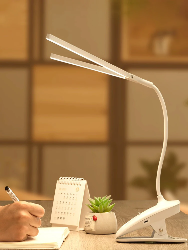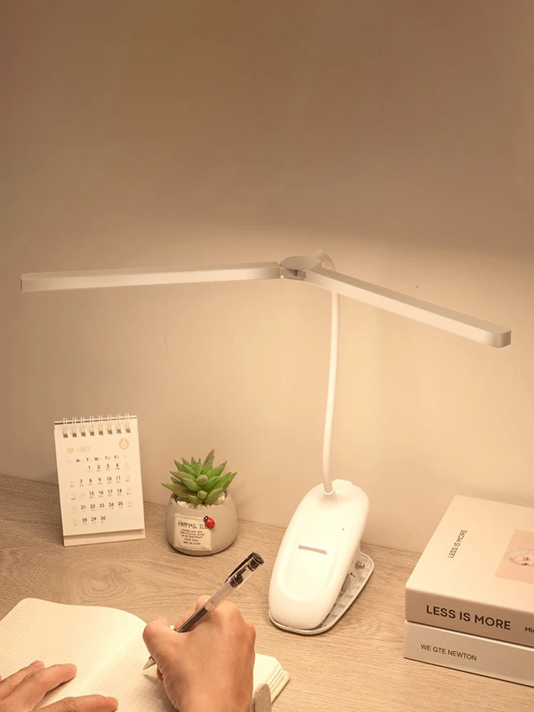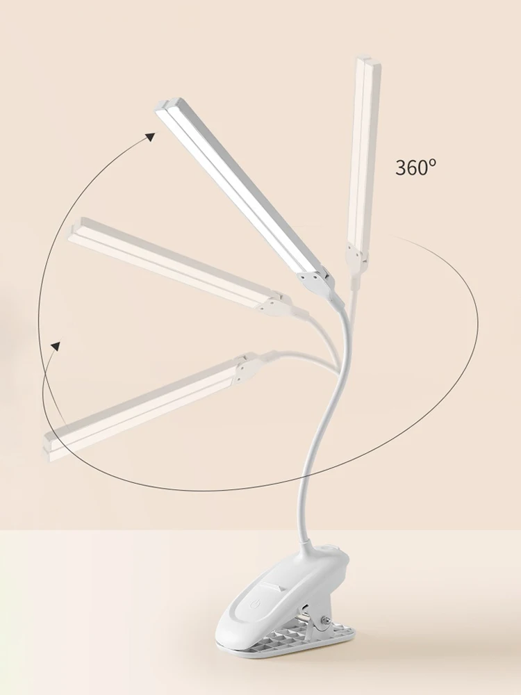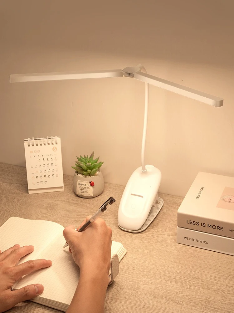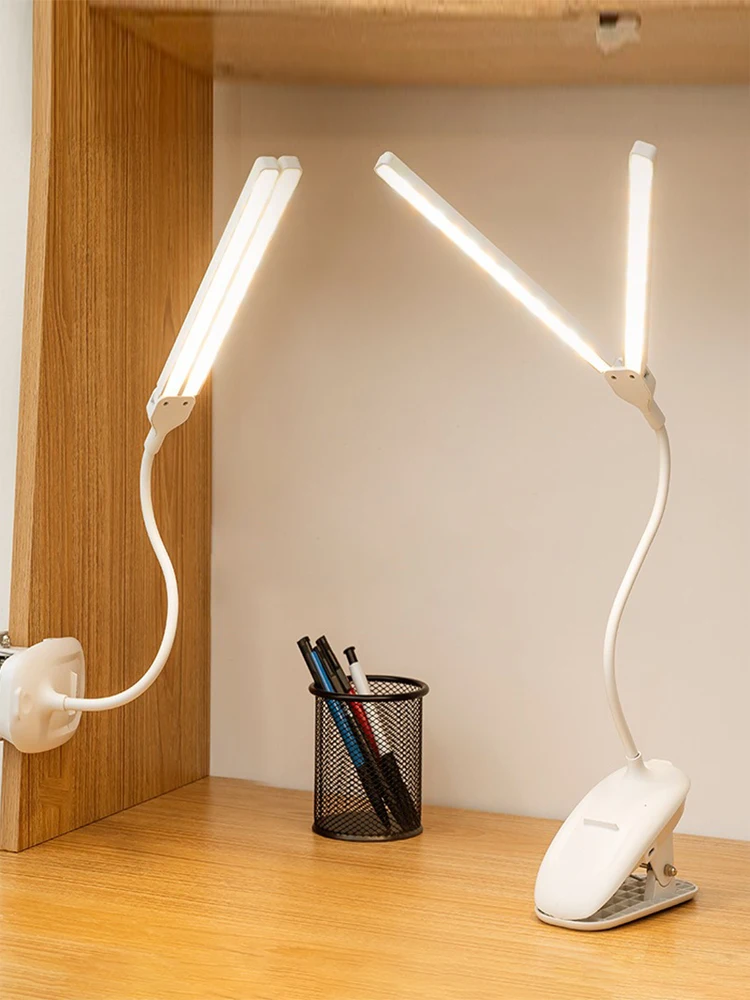 LED Double-headed Reading Table Lamp with Clip Touch Control Dimmable Light Eye Protection Mobile Phone Holder Led Desk Lamps