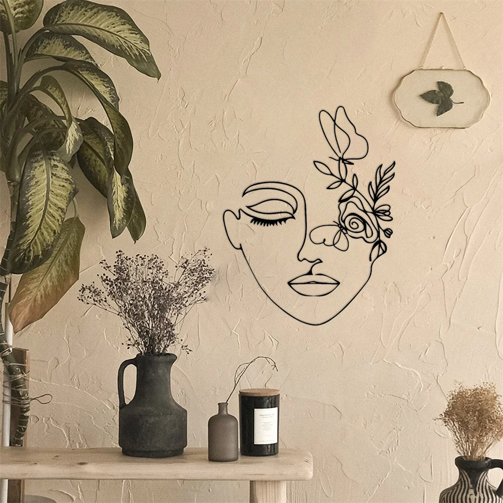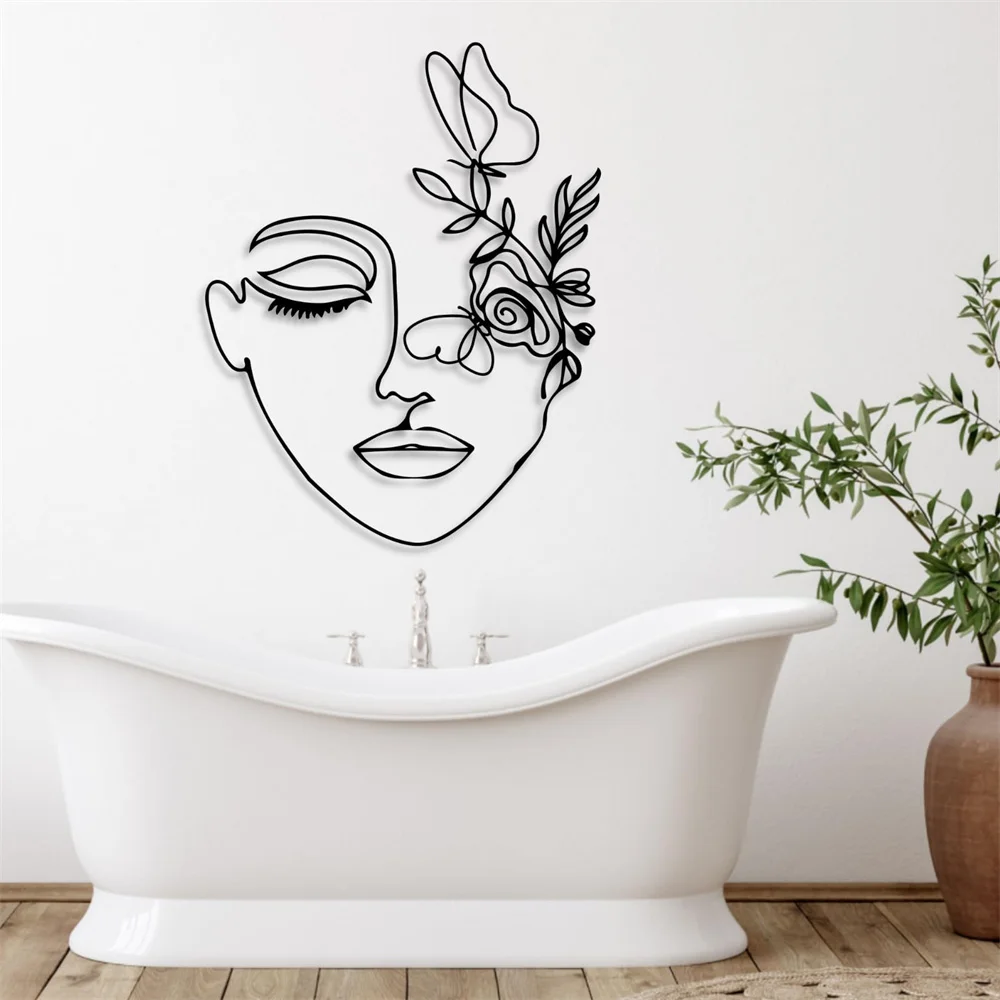 Minimalist Abstract Line Woman Metal Wall Art Decor Matte Black Wall Hanging Decor for Home Bedroom Living Room Wall Decoration