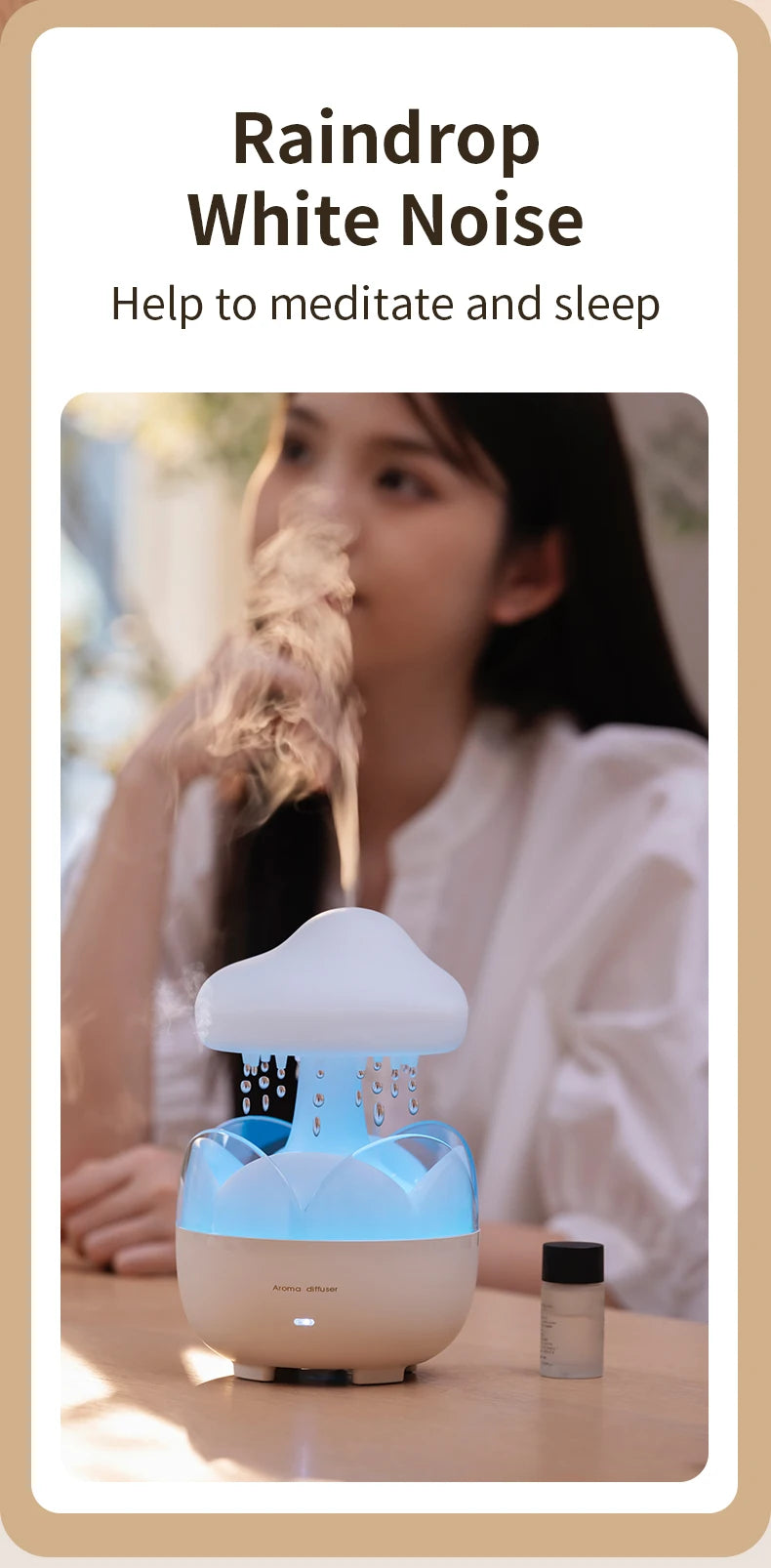 Mushroom Rain Air Humidifier Electric Aroma Diffuser Colorful Night Lights Rain Cloud Smell Distributor Relax Water Drops Sounds