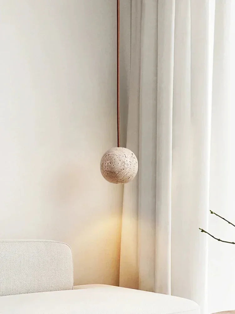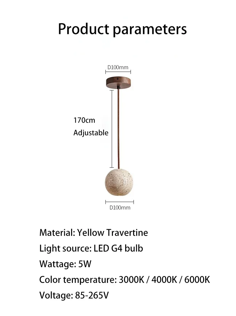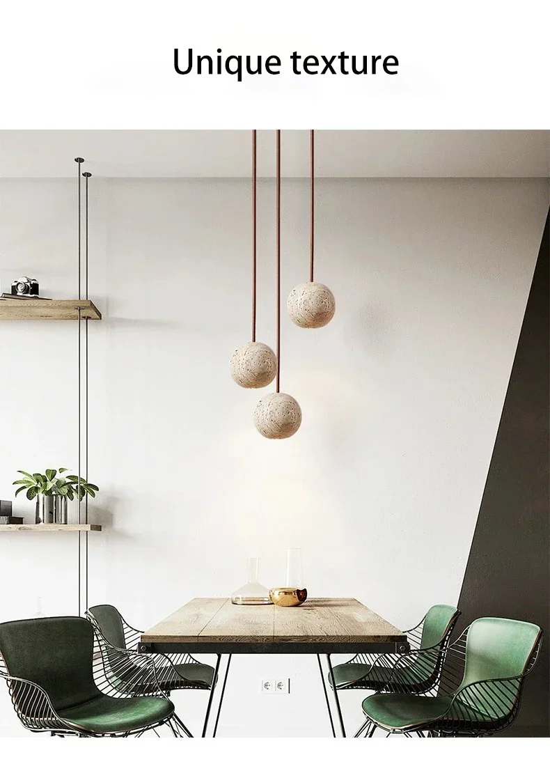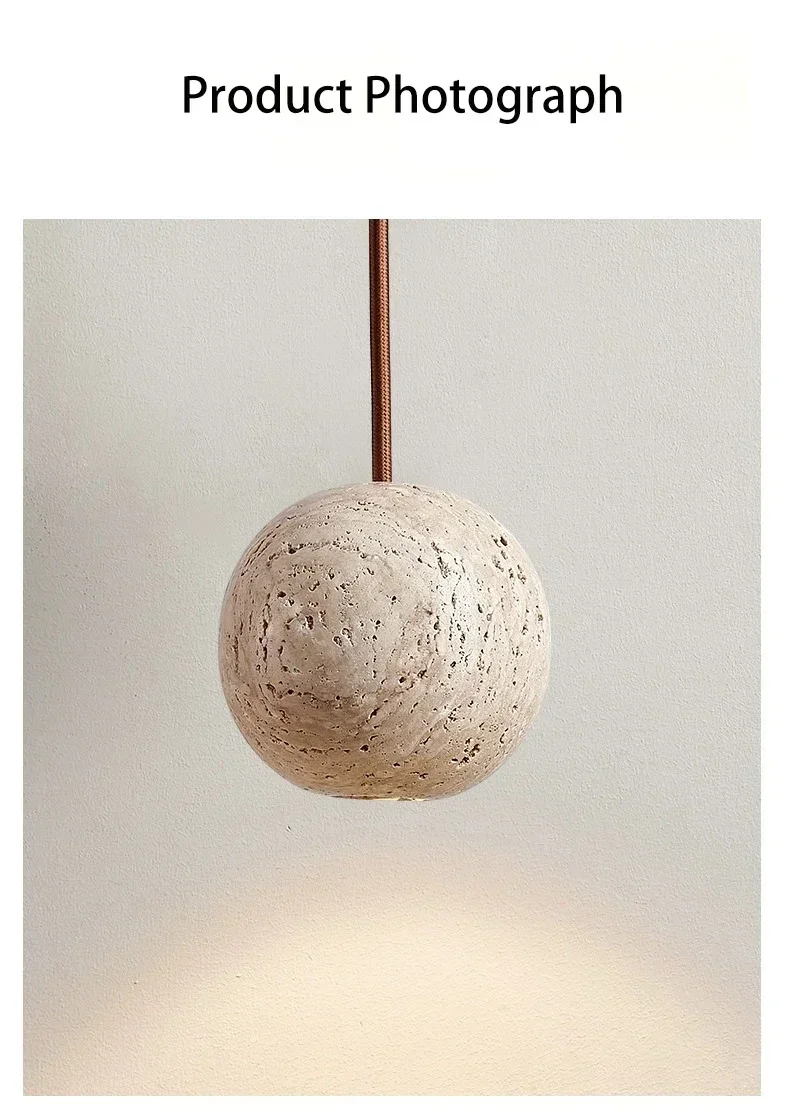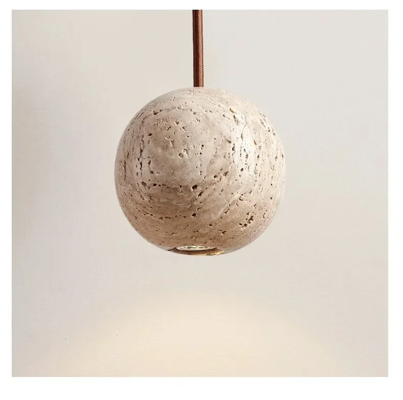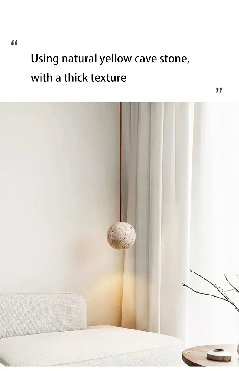 Pendant Lamp Stone Yellow Travertine Chandelier Bedside Small Round Light Bedroom Creative Hanging Line Lighting
