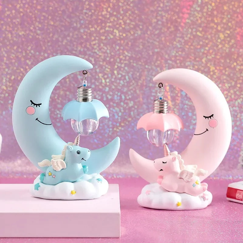 Pink unicorn girl heart angel moon nightlight, students and girls creative home desktop decorative resin ornaments gifts.