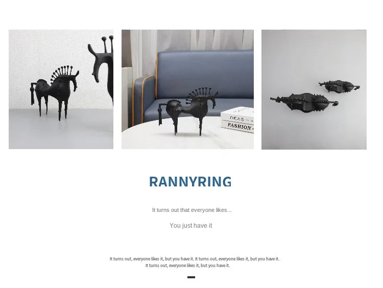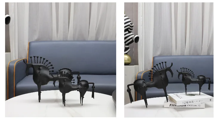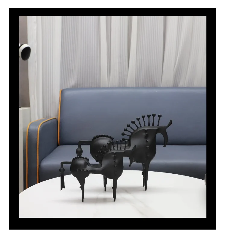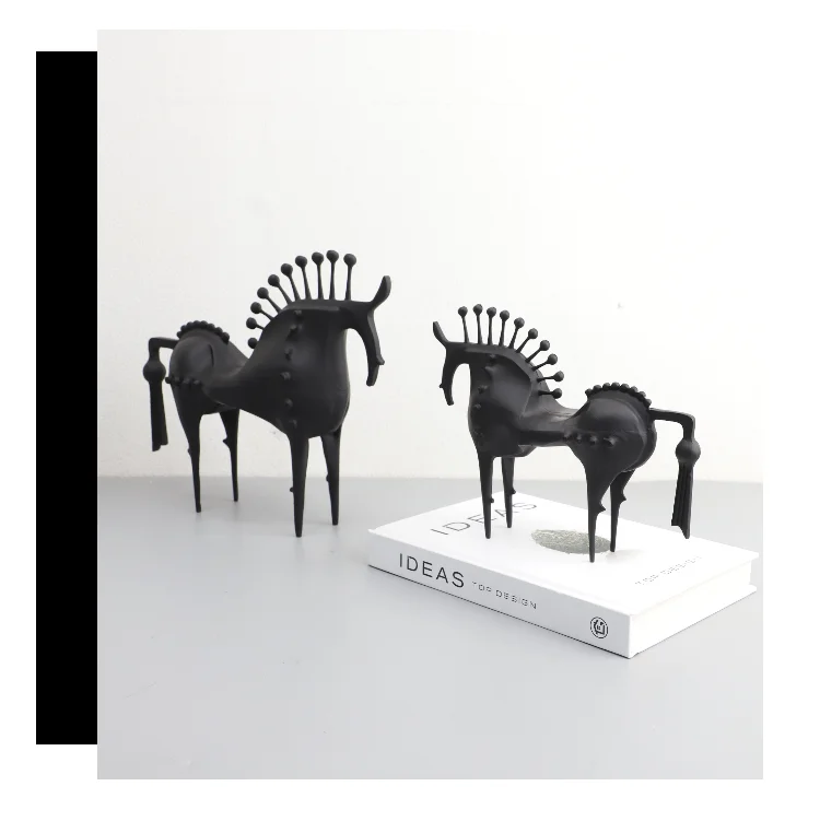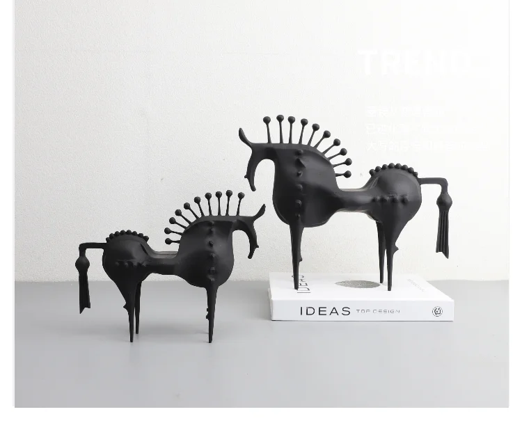 Thorn Horse Black Metal Abstract Statue,Creative Ornament, Home, Living Room, Office, Desktop Decoration, Handicraft Accessories