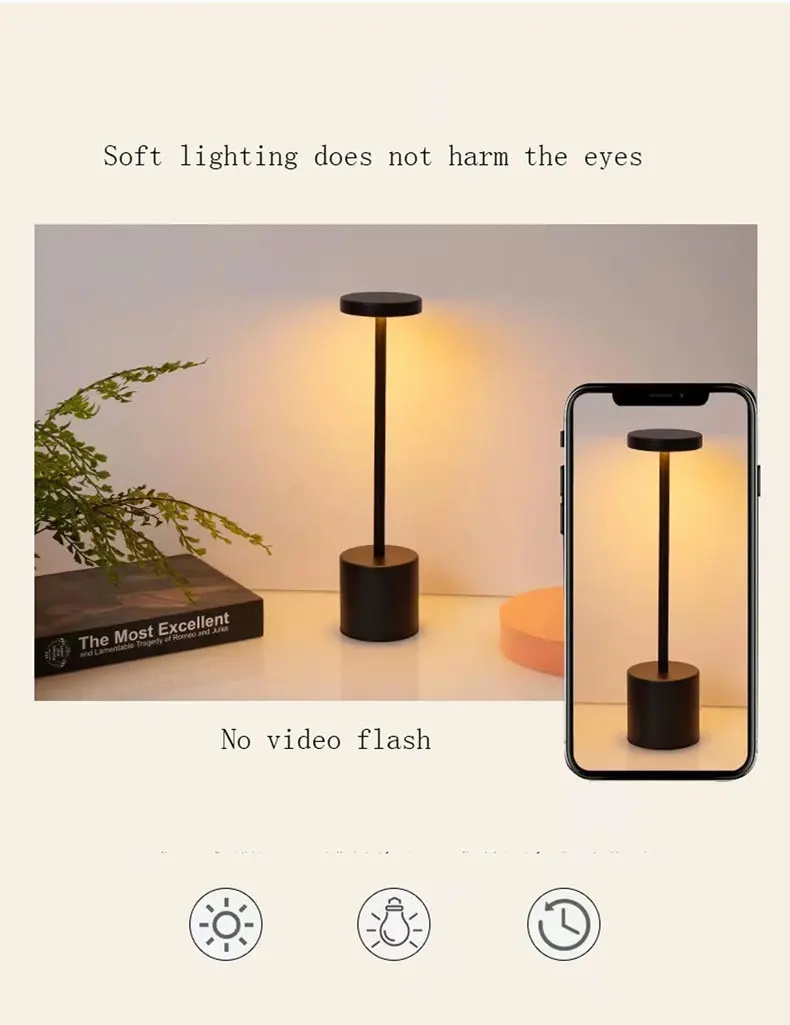 Touch Sensor LED Table Lamp USB Rechargeable Desk Lamp 3 Color Adjustable Temperatures Modern Style Bar Bedside Night Light