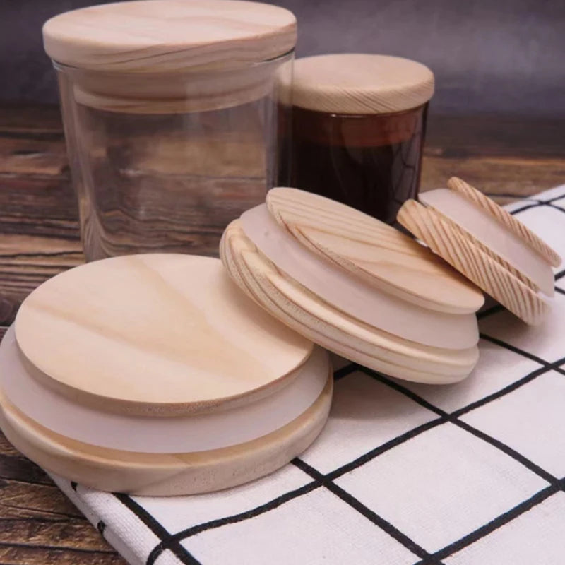 Wooden Lids Silica Gel Circle Seal Up Cover Pine Wood Cover Flower Wood Cover Seal Up Cani Storage Jar Handmade Candle Cup Lid